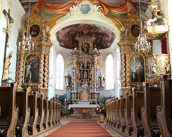 Von 13.00 bis 16.00 Uhr war die barocke Pfarrkirche St. Michael in Pfaffenhofen a.d. Glonn geöffnet. Jeweils um 13.00 Uhr, 14.00 Uhr und 15.00 Uhr bot Thomas Böck Kirchenführungen an. Hierbei konnten die Besucherinnen und Besucher die prachtvolle Ausstattung mit dem reich verzierten Rokoko-Altar besichtigen.